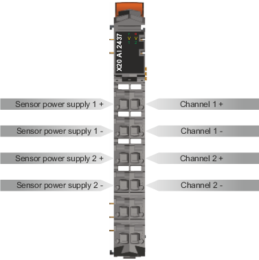 << 点击显示目录 >> 主页 贝加莱X20系列指示灯接线说明 > 模拟输入模块 > X20AI2237,2437 > X20AI2437 |