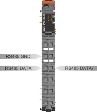 与总线基座 X20BBx3 连接时,控制器配有 RS485 接口。信号的端子连接位于供电模块上。